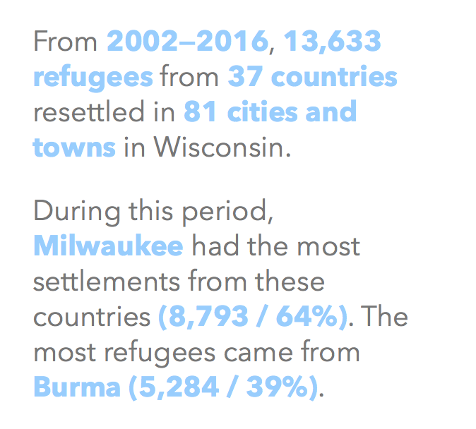 As I wrote about in the sister note to this post, I recently made a data visualization project exploring refugee resettlements in Wisconsin.